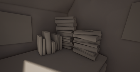 In the week I have produced some final meshes for Zone 1, this being a Cassette Tape and a collection of books. I created these meshes now as I believed that they would be fulfilling a sense of accomplishment seeing some final meshes in engine and the fact that they can be used universally in the attic.